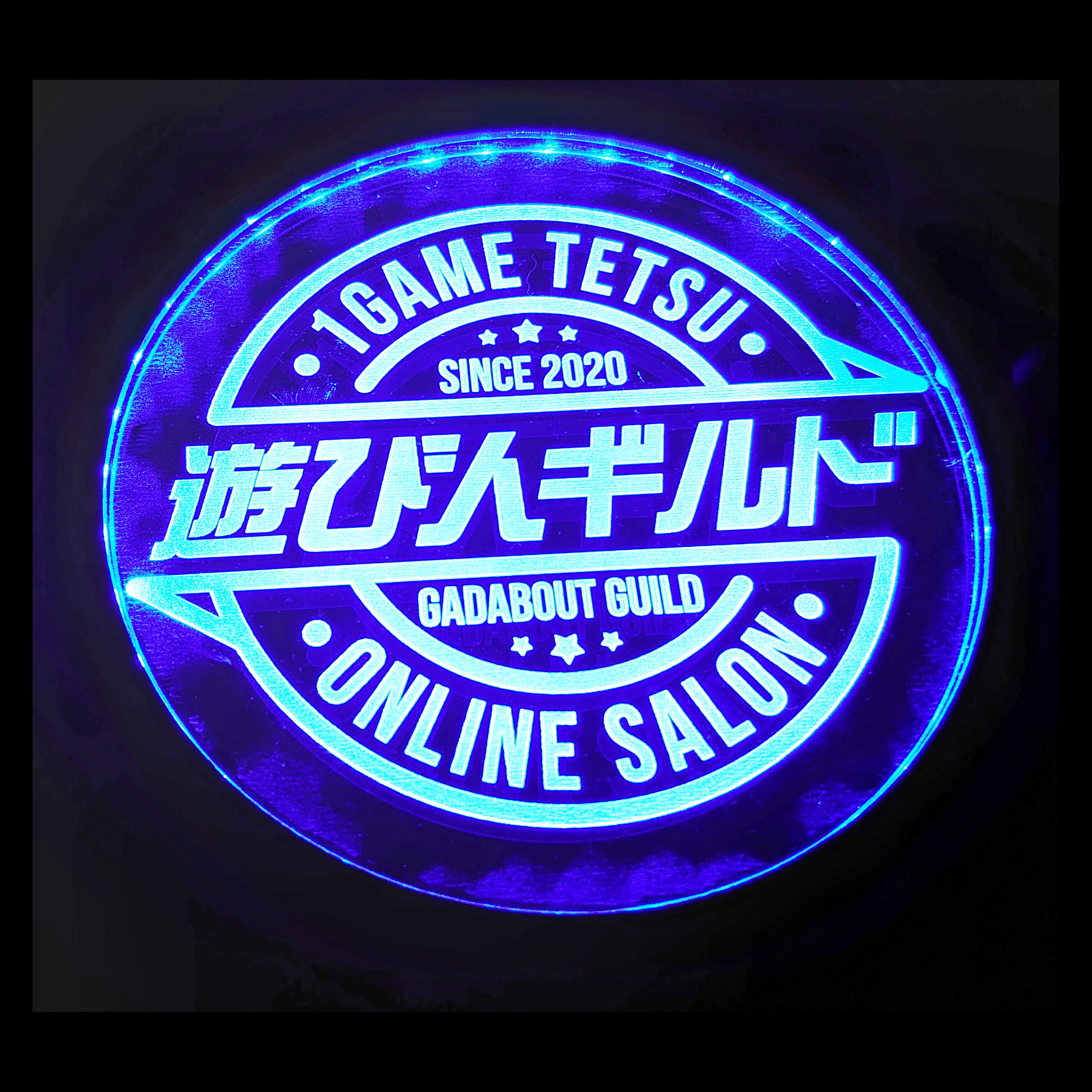遊び人ギルドのロゴが彫刻されたLEDコースター型サイン